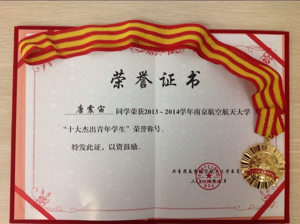 本实验室唐震宙同学获得2013-2014年度校“十大杰出青年学生”荣誉称号。此次【关于2013-2014年度校“十大杰出青年学生”评选结果的公告】经公开评审答辩,现场师生及社会媒体票决,确定学校共10名同学荣获2013-2014年度校“十大杰出青年学生”荣誉称号。 新闻链接:http://newsweb.nuaa.edu.cn:8888/nuaa_html/newsweb/zhyw/2014/0507/15400.html |