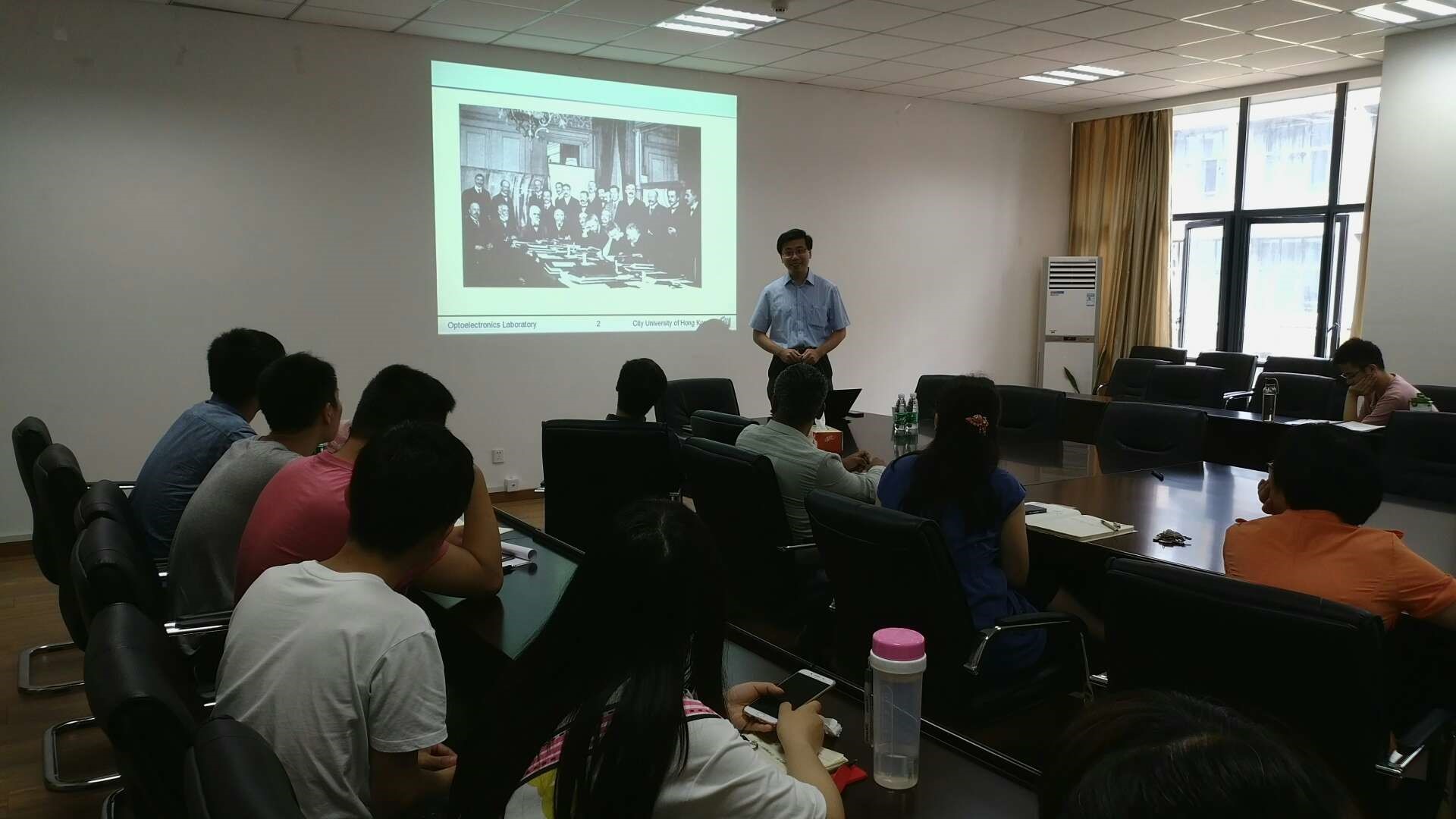 2017年6月13日上午,香港城市大学陈仕俊博士(Nelson Sze-Chun Chan)在我院办公楼211会议室做了题为“Chaotic Laser Dynamics and Applications”的学术报告。此次学术活动由南航微波光子实验室承办,共有20余位老师和同学参加并聆听了本次报告。 陈仕俊博士于2001年获得香港大学的学士学位,并于和2004年2007年获得加州大学洛杉矶分校的硕士和博士学位,现在是香港城市大学电子工程系和毫米波国家重点实验室副教授。研究方向包括:Nonlinear dynamics of semiconductor lasers, optical chaos generation, radio-over-fiber, photonic microwave generation。 |