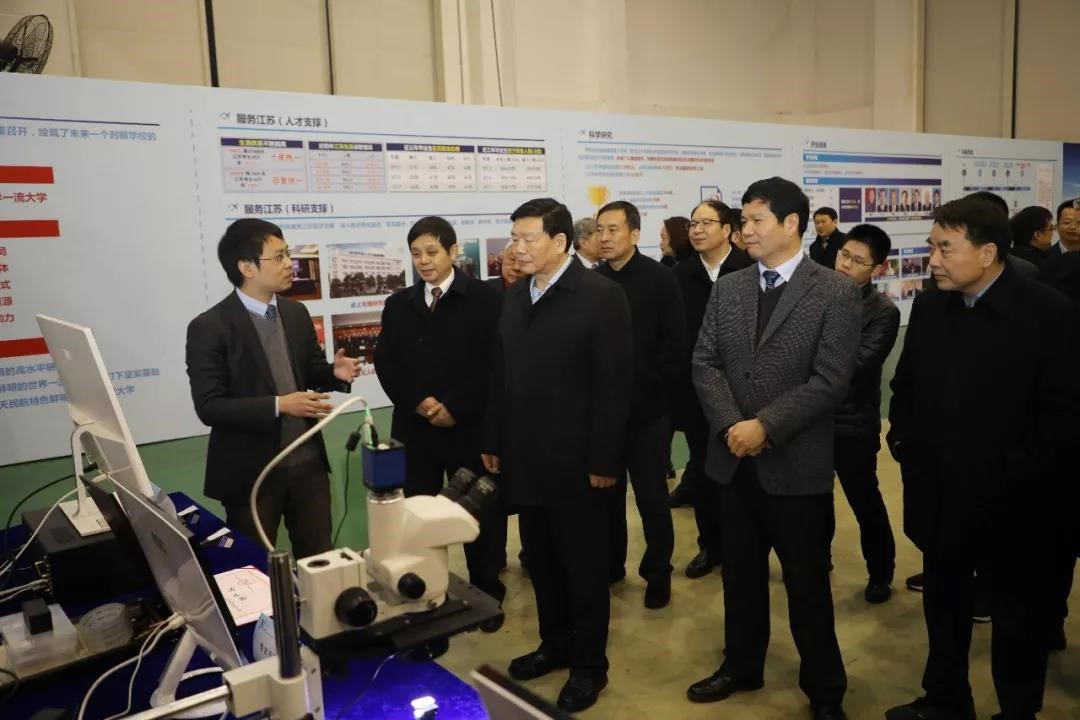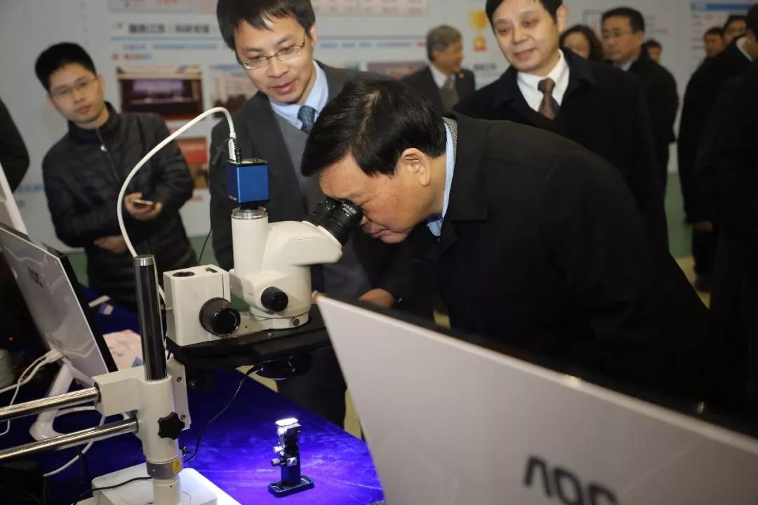 2月13日,江苏省委书记娄勤俭莅临南京航空航天大学调研。娄书记一行在校党委书记郑永安、校长聂宏的陪同下参观了在我校无人机研究院总装联试厂房举办的“南京航空航天大学科技成果展”,查看了我校在信息通信、航空装备等领域的科技创新情况和服务江苏等方面的突出成果。 在本次成果展中,我实验室在信息通信展区展示了微波光子学相关的最新技术成果。我室主任潘时龙教授代表我室向省领导依次介绍了高分辨率微波光子成像雷达、微波光子芯片、低相位噪声光电振荡器及超高精度光矢量分析仪,并与两位省市领导亲切互动。娄书记在了解到微波光子雷达能够实现高分辨率实时成像,在军事和民用领域都有着广泛的应用时,他指示要尽快将该技术和智能驾驶汽车相结合;他在了解到该团队的博士生已经将领先国外水平的超高精度光矢量分析仪成功创业、今年预计产值达两千万元,并为省内企业完成国家重点基础建设提供巨大支持时,连连点头称赞。娄书记鼓励实验室同学们勤奋学习、认真科研、多出成果,为国家科技进步做贡献。 |