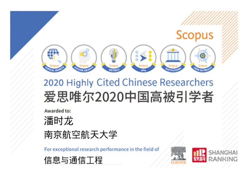 2022年4月14日,爱思唯尔(Elsevier)正式发布了2021年度“中国高被引学者”(Highly Cited Chinese Researchers)榜单。南京航空航天大学微波光子学实验室潘时龙教授入选信息与通信工程学科中国高被引学者。这是潘时龙教授继2020年入选之后又一次成功入选。
