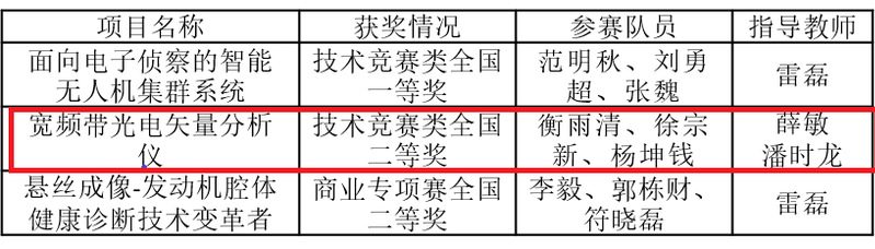 2022年9月25日,“兆易创新杯”第十七届中国研究生电子设计竞赛全国总决赛评审工作 圆满收官。经专家评审,南京航空航天大学荣获全国总决赛优秀组织奖,电子信息工程学院/集成电路学院在比赛中喜获一等奖一项、二等奖二项,其中我室由薛敏、潘时龙老师指导的“宽频带光电矢量分析仪”项目荣获技术竞赛类全国二等奖。