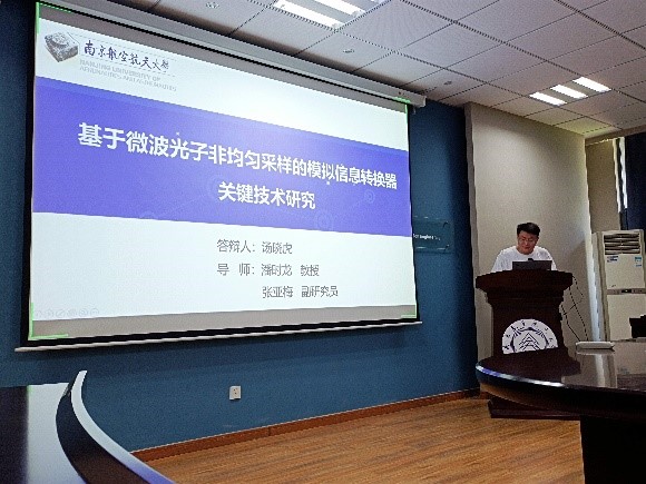 首先,王立晗和汤晓虎两位博士生分别就高速高精度光时延测量技术研究以及基于微波光子非均匀采样的模拟信息转换器关键技术研究做了汇报。然后,考核组老师以及同学们就汇报内容展开了积极的讨论。最后,潘时龙教授为两位博士生提出了丰富且实用的意见和建议,对两位博士生进一步提高后续的研究质量具有重要的指导意义。