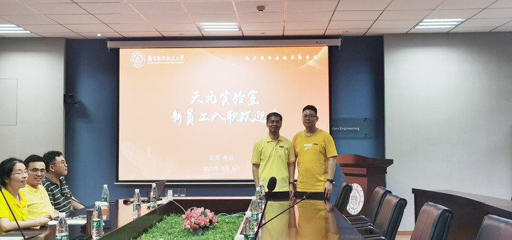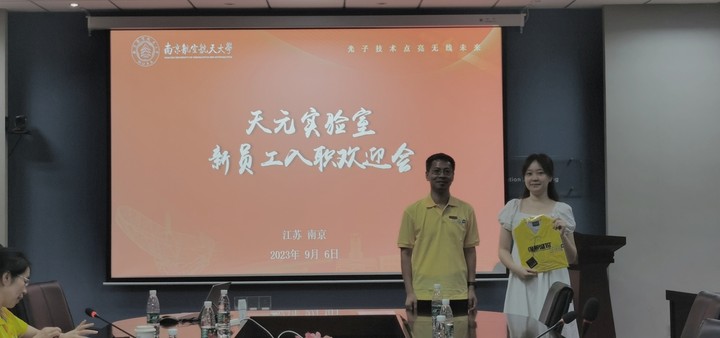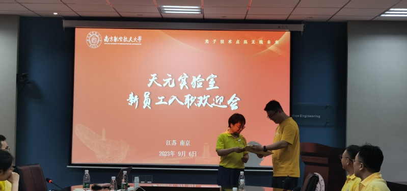 实验室主任潘时龙和团队教师代表李思敏为新员工赠送了实验室T恤,欢迎新员工加入实验室大家庭,这是团队精神的体现,更是实验室文化的传承。