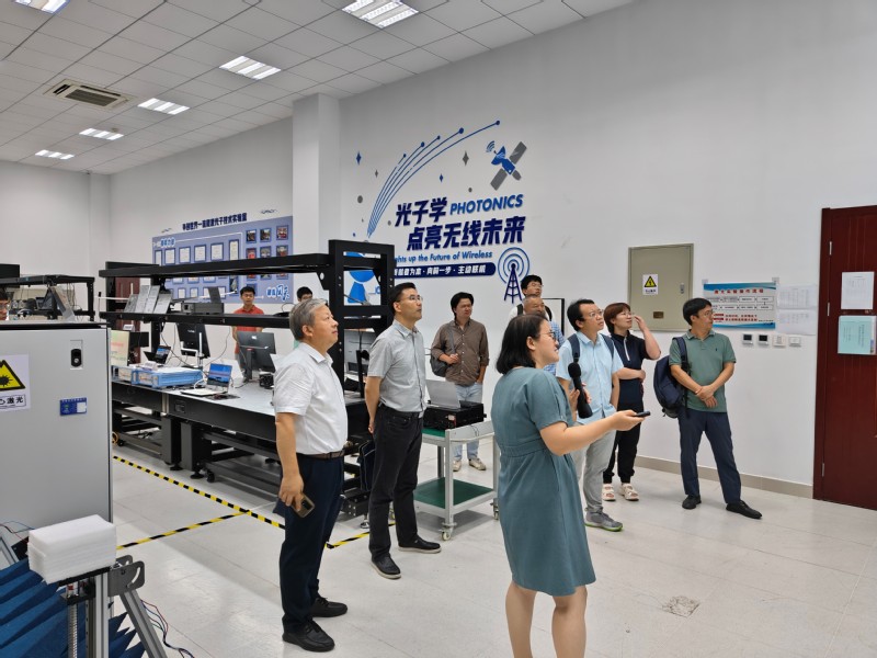 会后,梁广主任一行前往实验室进行参观。实验室的老师和同学向来访专家汇报展示了高分辨微波光子成像雷达、空间光稳相传输、微波光子集成芯片、微波光子实时频谱仪、微波光子自适应采样、超高分辨率光矢量分析仪表等研究成果。